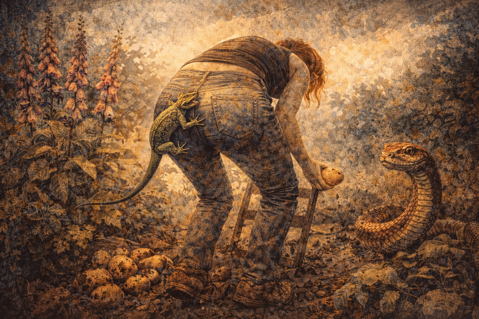 Printre bozii, în grădină,